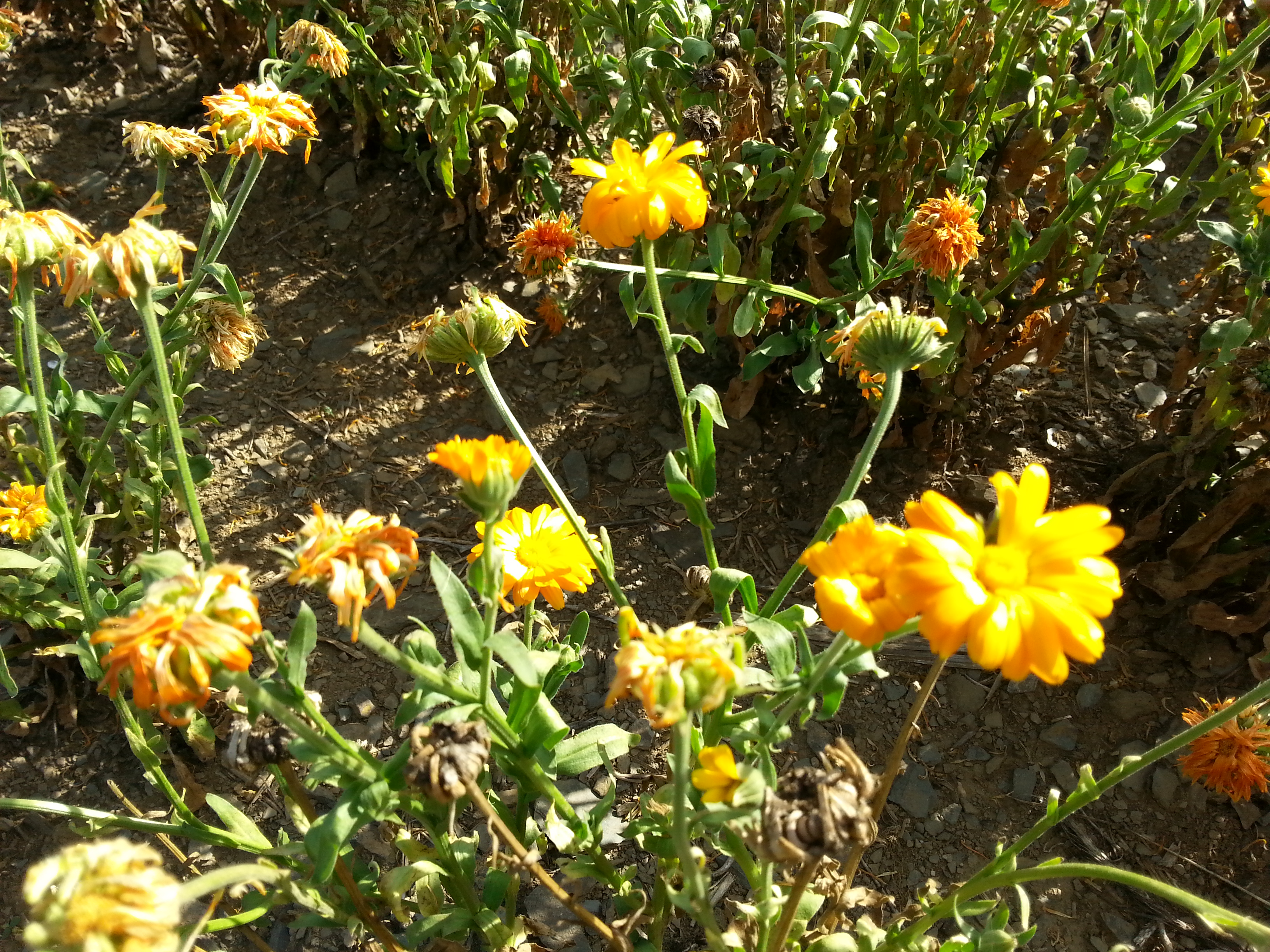 Das Ringelblumenfeld leuchtete nicht mehr in ganzer Pracht. Die Blüten wurden dieses Jahr leider nicht ausreichend groß, so dass nur ein kleiner Teil geerntet wurde. Der rest steht jetzt zur Abreife auf dem Feld, dann werden die Samen geerntet.