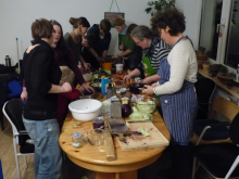 Ab 17h trudelten Sauerkraut-Interessierte und -Fans in der bereitgestellten Wohnung ein, voll beladen mit Gemüse, Einmachgläsern, Krauthobeln und Brettchen.