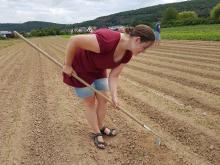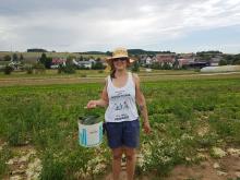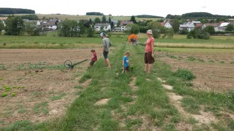 Schlecht für die Pflanzen, gut für die fleißigen Ackerhelfer*innen: Das Wetter beim zweiten Ackereinsatz der Saison 2020/21 hätte fast nicht besser sein können. Von der Gewittervorhersage unbeeindruckt kamen dann auch elf Erwachsene und fünf Kinder nach Kirchvers. Gemeinsam wurde vor allem gehackt (sprich: Beikräuter mit einer Hacke entfernt). Manches Ackergewächs, das unseren Kulturpflanzen Licht, Nährstoffe und Wasser streitig macht, war schon so groß, dass es mit den Händen herausgezogen werden konnte. Das war vor allem bei zwei Reihen Möhren sowie bei zwei Reihen Pastinaken der Fall. Besonders die Kinder haben sich hier hervorgetan und begeistert mitgeholfen. Eine erstaunte Mutter dazu: "Wir sind zum ersten Mal bei einem Ackereinsatz dabei, weil ich immer befürchtet hatte, dass die Jungs keine Lust darauf haben und wir nach einer halben Stunde wieder nach Hause fahren müssen. Ich hätte nicht gedacht, dass es ihnen so viel Spaß macht!" Eine weitere Familie, die ursprünglich "nur" zur Erdbeer-Nachernte gekommen war, ließ sich auch noch überzeugen mitzumachen.
