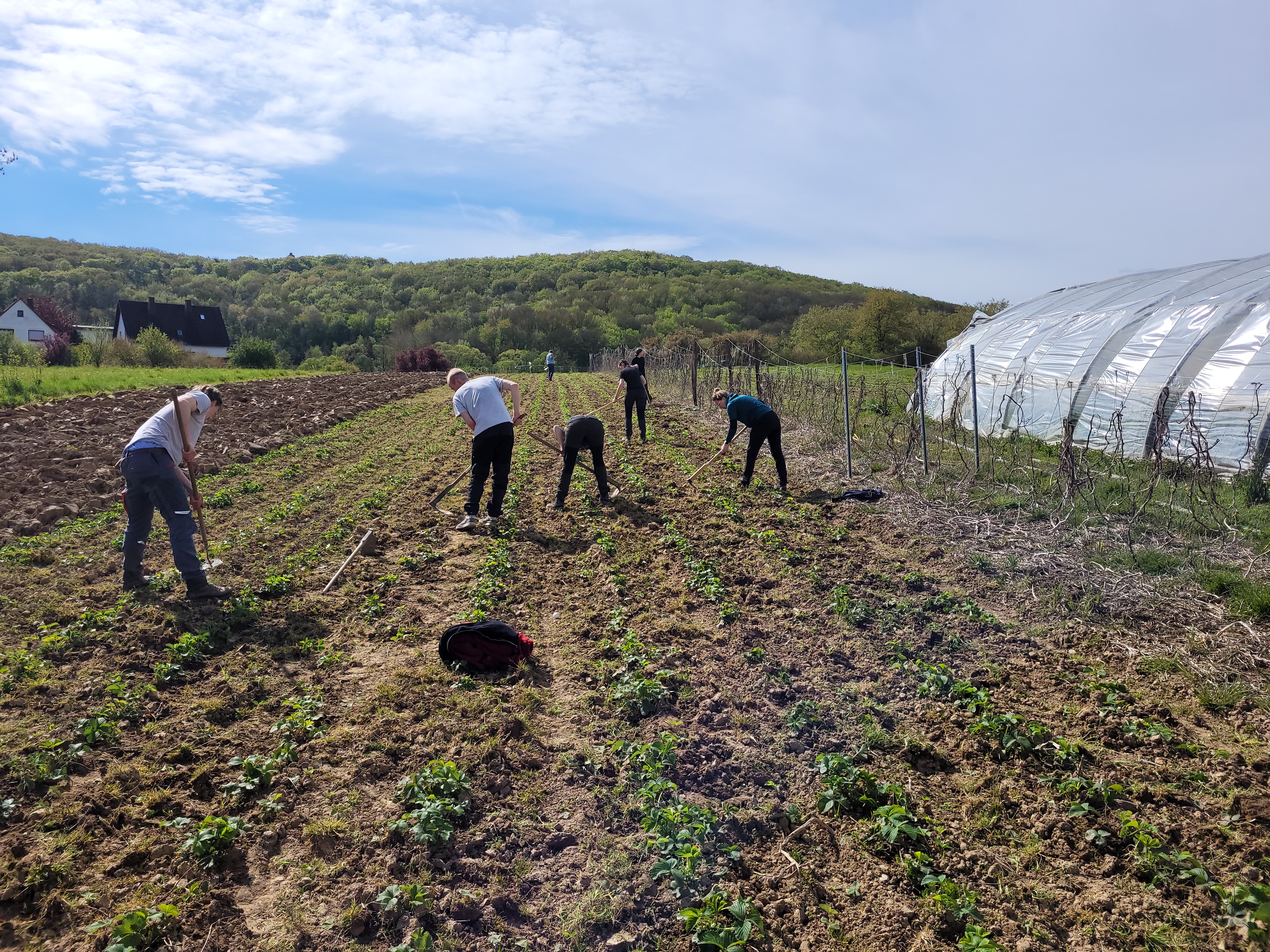 Beim Ackereinsatz im Mai werden wir voraussichtlich auf demselben Acker weitermachen und dann auch das Stroh unter den Pflanzen verteilen, damit die Früchte ein warmes und weiches Bett haben. Wer sich dafür anmelden möchte: Achtet auf den Newsletter!