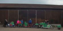 Am letzten Samstag haben Mitglieder der Solidarischen Landwirtschaft Marburg eine Tonne Kartoffeln mit Fahrrädern vom Bio-Bauernhof Fleckenbühl nach Marburg transportiert.