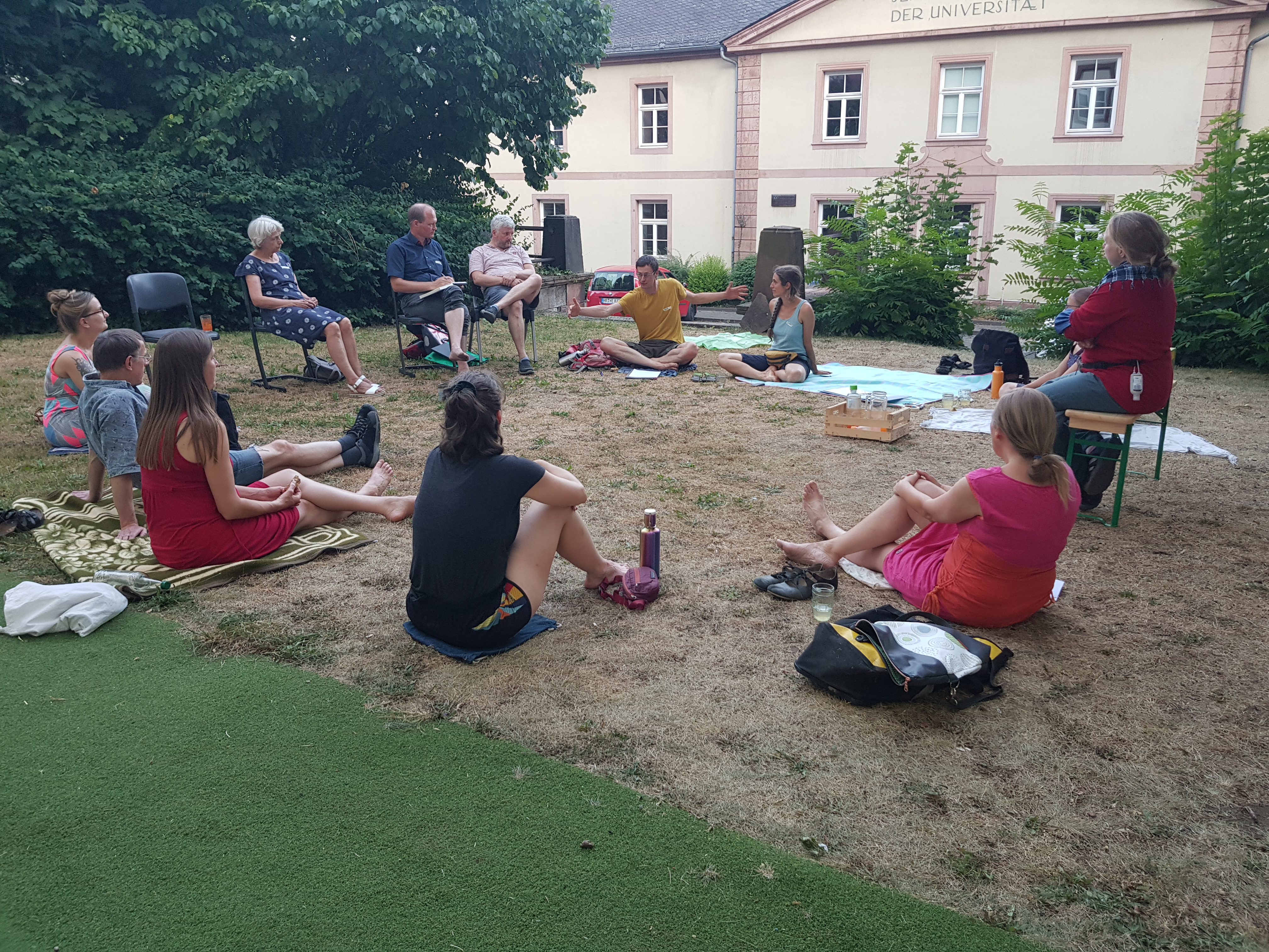 20 Uhr, 30 Grad - so warm war es bei einer Mitgliederversammlung des Solawi Marburg e.V. noch nie! Ausgerechnet an einem der wärmsten Tage des Jahres hatten wir uns verabredet. Um auch die Gefahr einer Ansteckung mit dem Coronavirus so gering wie möglich zu halten, trafen wir uns draußen auf einer Wiese. Die war allerdings, der Trockenheit geschuldet, kaum noch als solche erkennbar. So stand eines der Themen des Abends allen vor Augen: das Problem der Bewässerung. Aber der Reihe nach!